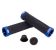 Грипсы XH-G59BL, длина 130 мм, двухсторонняя фиксация при помощи винтов, чёрная термопластичная резина с синими алюминевыми кольцами.